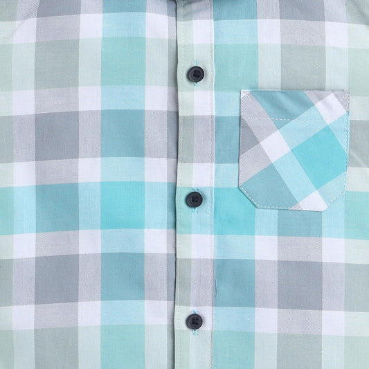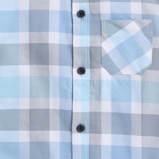 Polka Tots Half Sleeve Super Soft Cotton Checks Shirt With Roll Up Sleeve - Blue & Grey