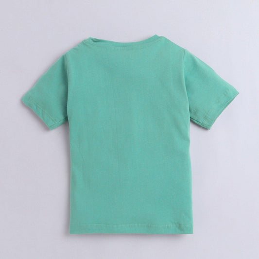 Polka Tots Half Sleeve T-shirt 100% Cotton Antibacterial Fabric Train Green
