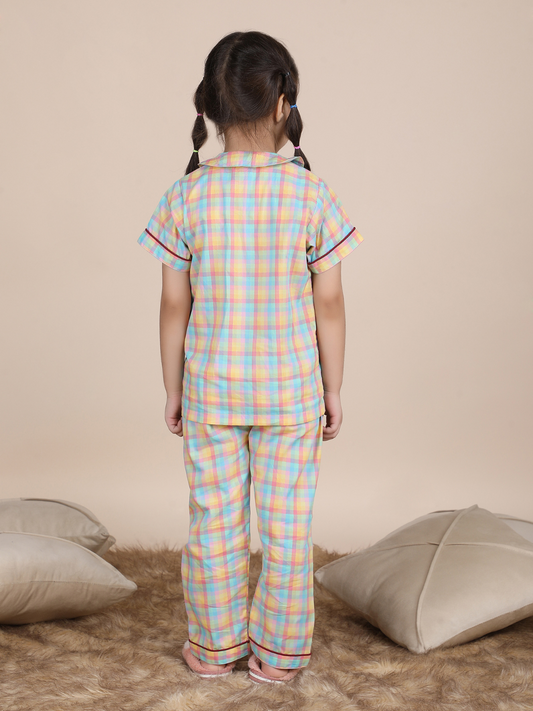 Polka Tots Half sleeves Checks print Night Suit - Multicolor
