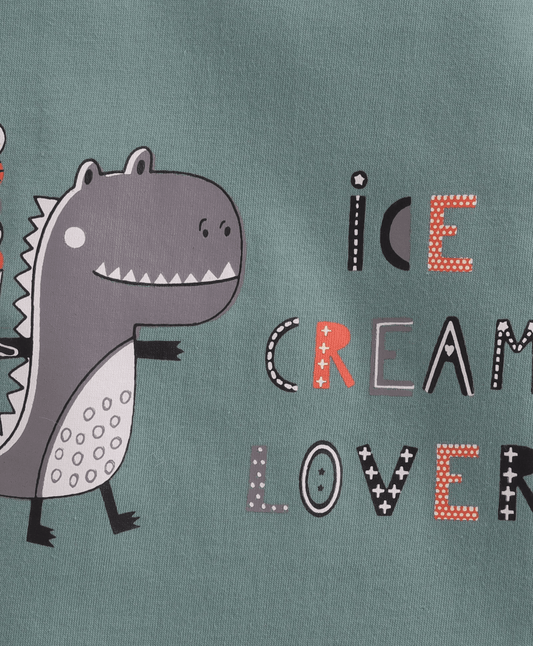 Polka Tots Half Sleeves Dinosaur Print Tshirt - Green