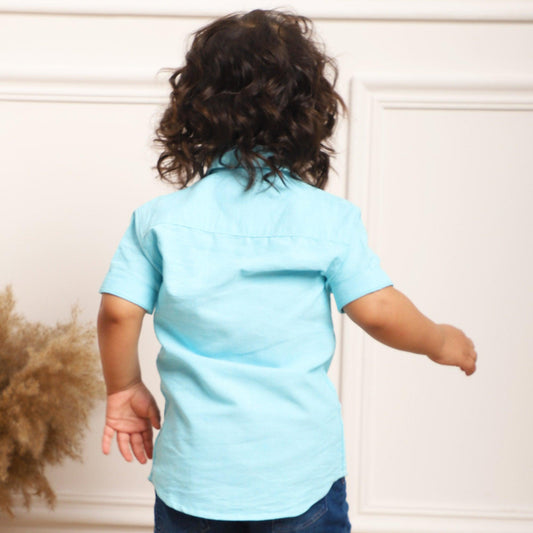 Polka Tots Half Sleeves Think Out Of Box Pocket Print Shirt - Sky Blue
