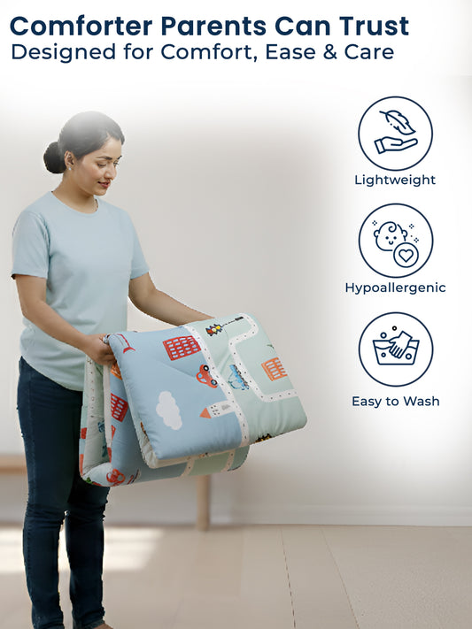 Polka Tots Kids Comforter Baby Blanket and Reversible Quilt 2 Way Design ( Roadway,54 x 35 Inch )