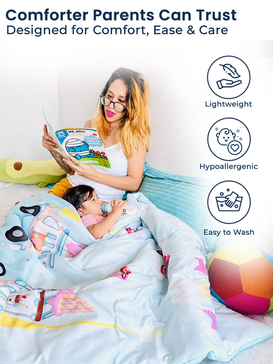 Polka Tots Kids Comforter Baby Blanket and Reversible Quilt 2 Way Design ( Ice-cream, 54 x 35 Inch )