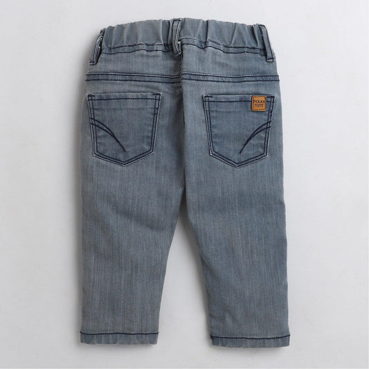 Polka Tots Lets Dig Excavator Patch Denim Pant - Grey