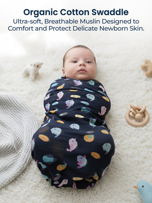 Polka Tots Muslin Swaddle Organic Cotton (Bird)