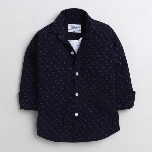 Polka Tots new york print full sleeve shirt with attached tshirt - Navy blue