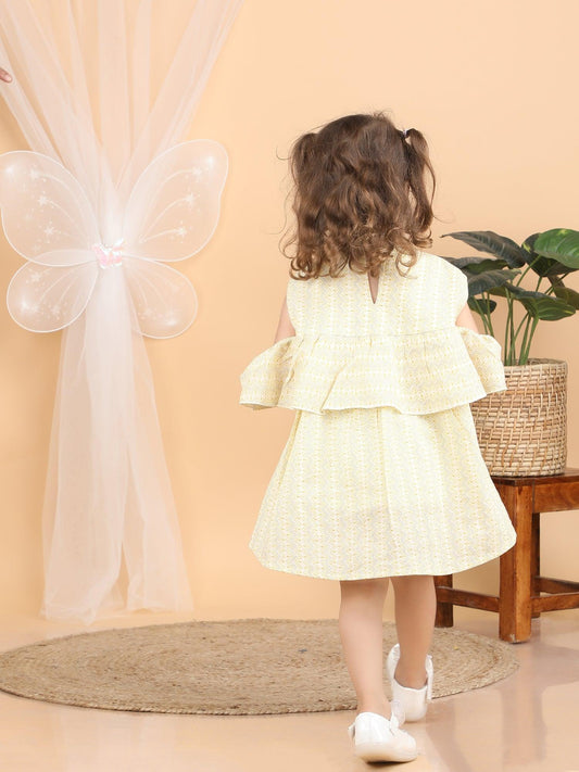 Polka Tots Halfsleeves Zig zag print frock with headband - Yellow