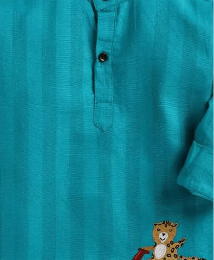Polka Tots Tiger Embroidered Full Sleeves Kurta - Aqua