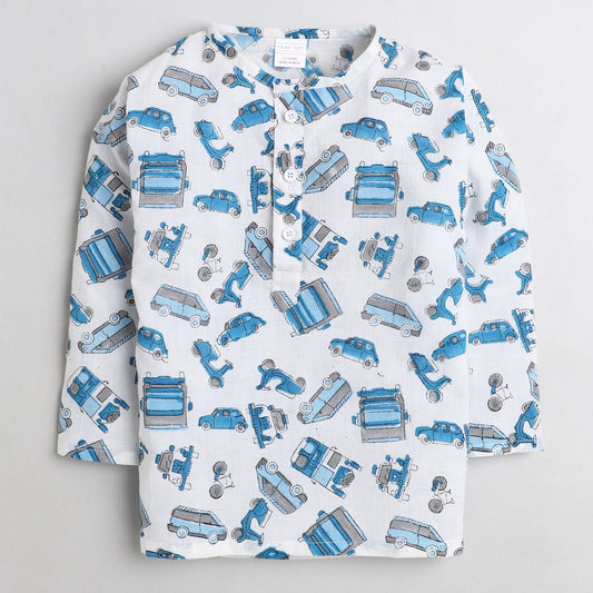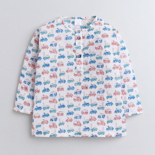 Polka Tots Vehicle print Full sleeves Nightwear Kurta pyjama set - White