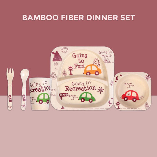 Eco Friendly 5 Pieces Bamboo Fiber Kids Dinner Set (Car)