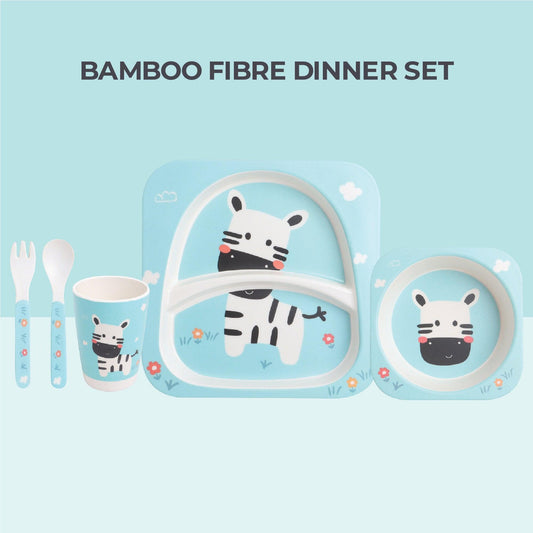 Eco-Friendly 5 Pieces Bamboo Fiber Kids Dinner Set (Zebra)