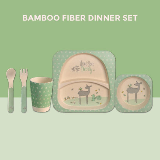 Eco Friendly 5 Pieces Bamboo Fiber Kids Dinner Set (Deer)