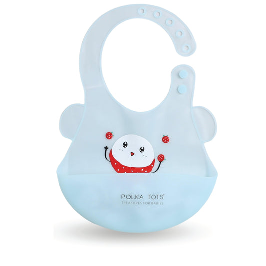 Polka Tots Waterproof Silicone Bibs with Pocket and Adjustable Snaps (Strawberry Man)