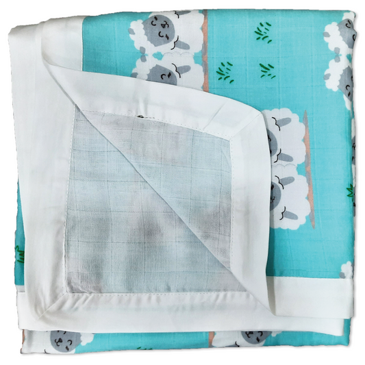 Polka Tots Organic Muslin Cotton two Layer Blanket SuperSoft Size 110 x 110 CM (Sheep)