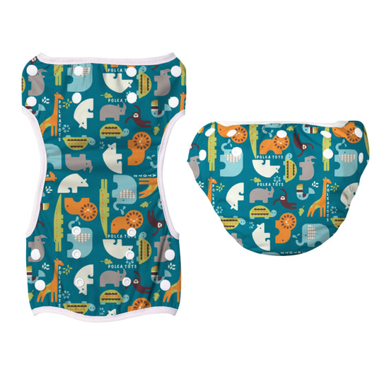 Reusable Swim Diaper/Swim Costume Safari Design - Teal