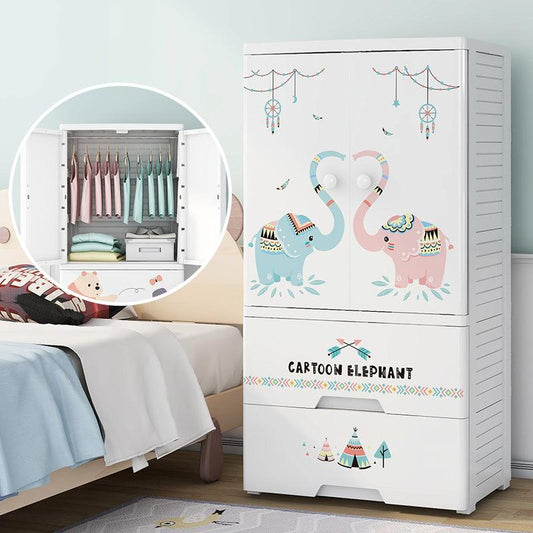 POLKA TOTS Wardrobe Storage Convertible/Collapsible Almirah Plastic Closet For Clothes (Cartoon Elephant)