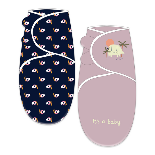 Polka Tots Pack of Two Baby and Elephant print Swaddle Wraps - Multicolor