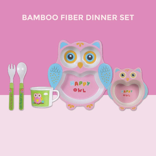 Eco-Friendly Bamboo Fiber Kids Crockery Set having 5 Pieces (Happy Owl)