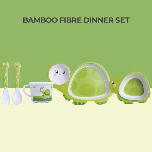 Eco-Friendly Bamboo Fiber Kids Crockery Set having 5 Pieces Dinner Set (Turtle)