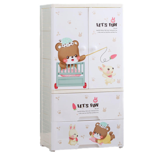Polka Tots Three Level Storage Almirah Plastic Fiber Kids Storage Closet Wardrobe