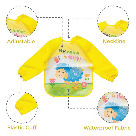 Full Sleeves Washable Waterproof Apron Feeding Bib for Babies (My Name is Sheep)