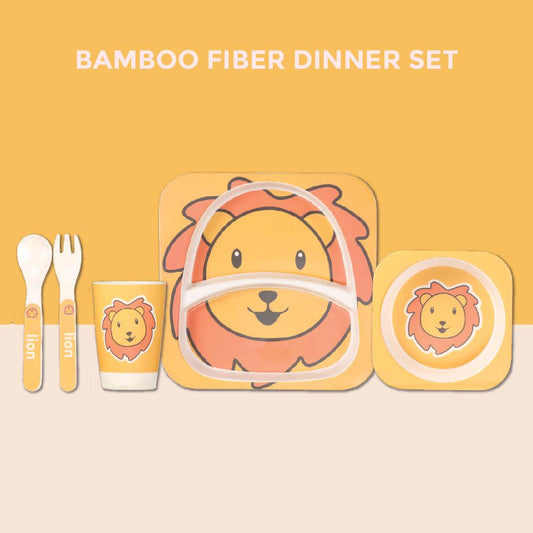 Eco Friendly 5 Pieces Bamboo Fiber Kids Dinner Set (Lion)