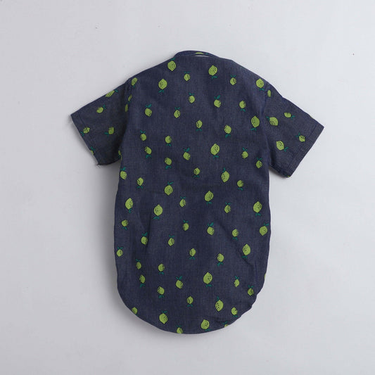 Polka Tots Half Sleeve Denim Shirt Blue (Lion)