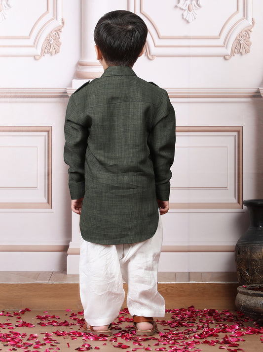 Polka Tots Full Sleeves Pathani Set - Maroon