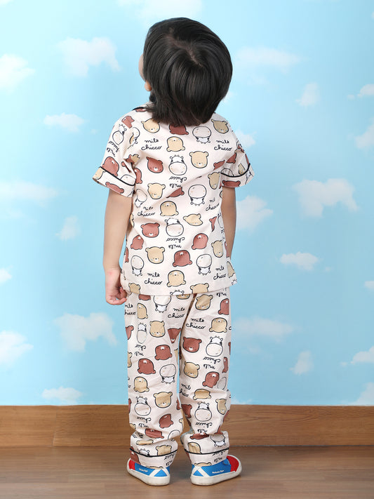 Polka Tots Half sleeves Cow print Night Suit - Brown