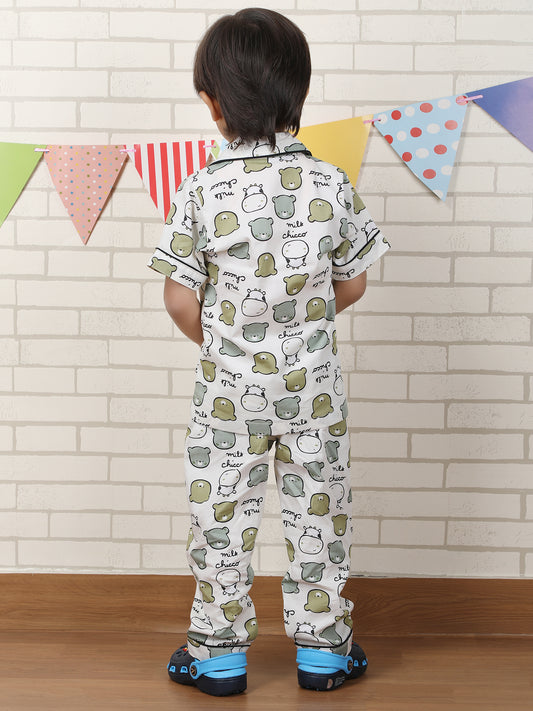 Polka Tots Half sleeves Cow print Night Suit - Green