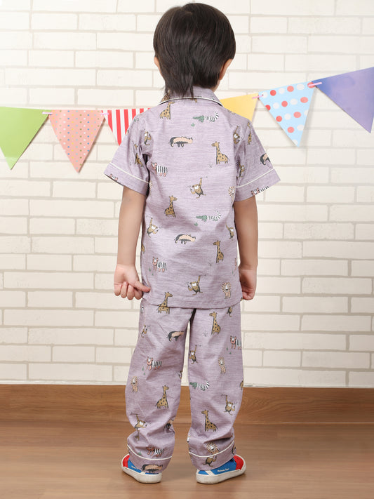 Polka Tots Half sleeves Jungle print Night Suit - Purple