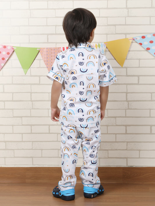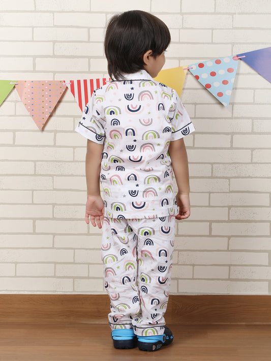 Polka Tots Half sleeves Rainbow print Night Suit - White