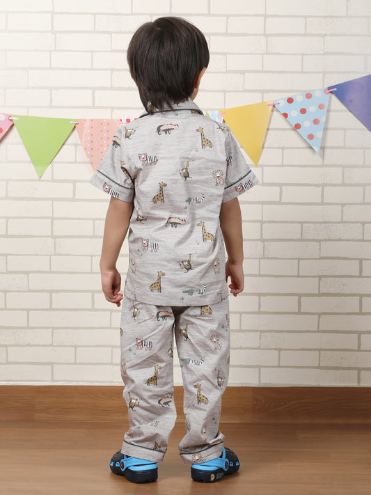 Polka Tots Half sleeves Jungle print Night Suit - Grey