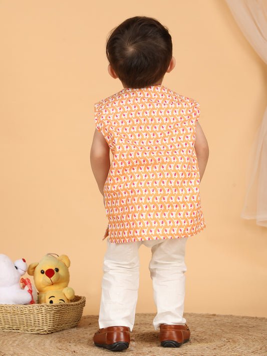 Polka Tots Sleeveless Elephant print Jhabla and Pant Set - Orange