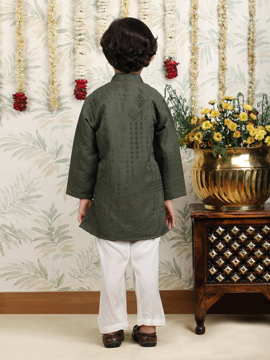 Polka Tots Full Sleeves Textured Pathani Kurta Set - White