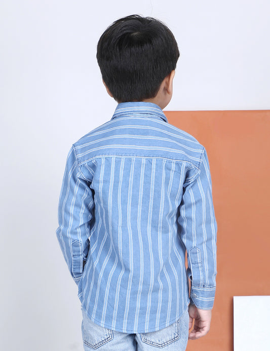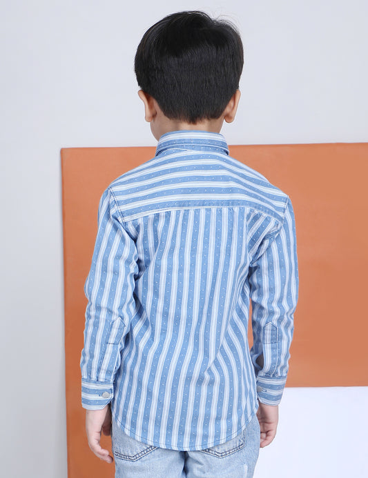 Polka Tots Full Sleeves Cotton Striped Shirt - Blue