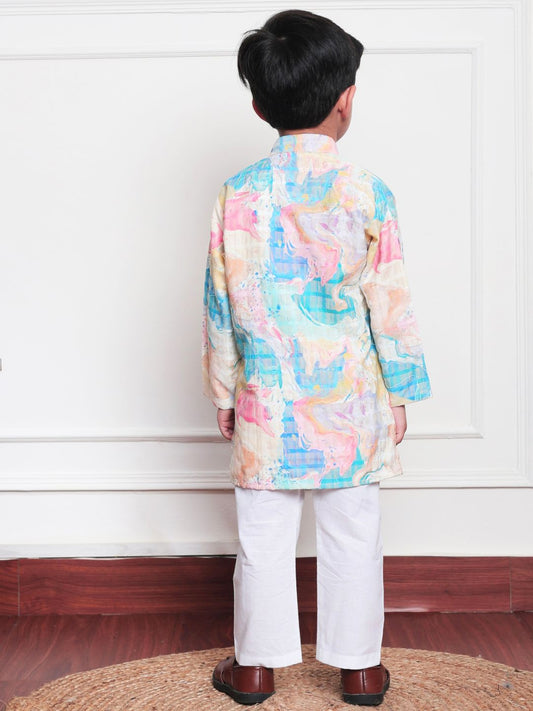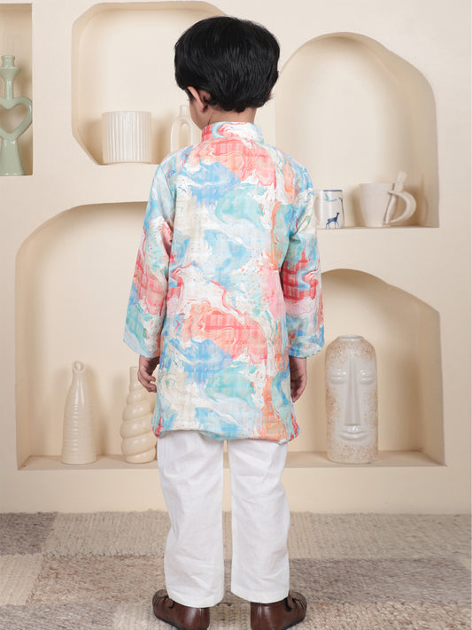 Polka Tots Full Sleeve Abstract print Ethnic Kurta Pyjama Set - Blue