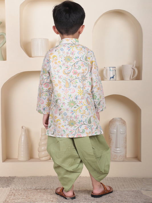 Polka Tots Full Sleeve Floral print Kurta With Dhoti Set - Green