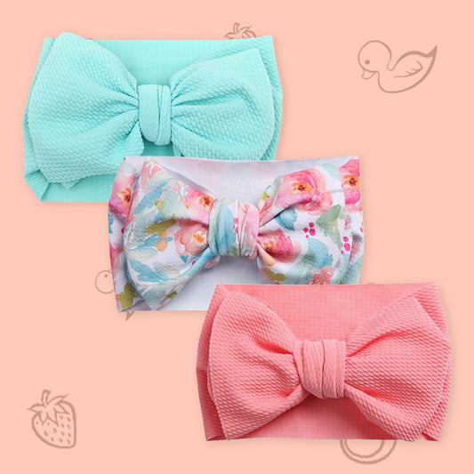 Polka Tots Pack of 3 Solid and Floral Print Bow Headbands Set - Multicolor