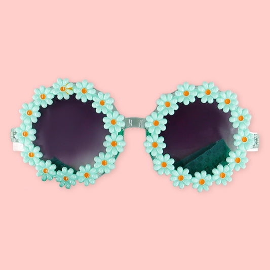 Polka Tots Baby Girls Schiffli Embroidered Bow Headband & Floral Sunglasses Set - Sea Green