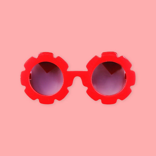 Polka Tots Baby Girls Bow Headband with Flower Shaped Sunglasses Set - Red