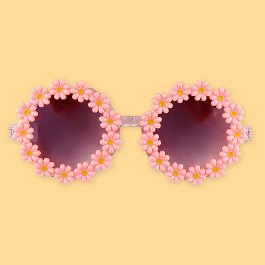 Polka Tots Baby Girls Schiffli Embroidered Bow Headband & Floral Sunglasses Set - Peach