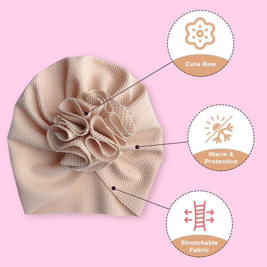 Polka Tots Baby Girls Cotton Knit Solid Flower Headband Cap - Beige