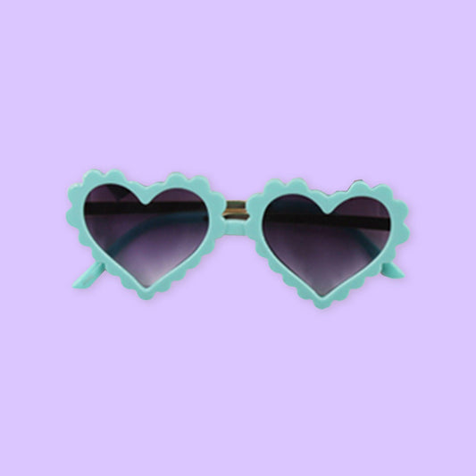 Polka Tots Baby Girls Floral Print Bow Headband with Heart Shaped Sunglasses Set - Aqua