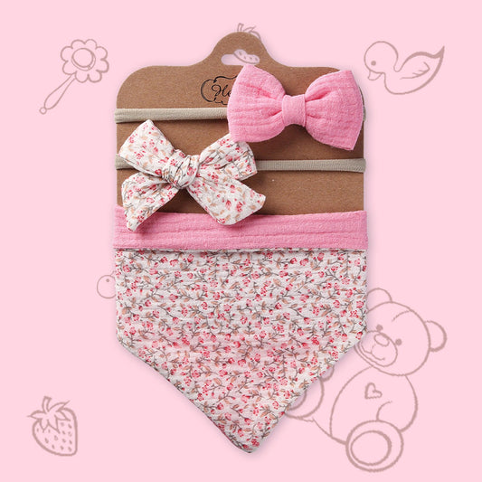 Polka Tots Baby Girl Set of 2 Floral Bow Headbands with Bib Set - Pink