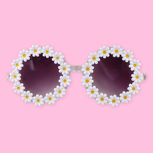 Polka Tots Baby Girls Schiffli Embroidered Bow Headband & Floral Sunglasses Set - White