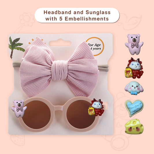 Polka Tots Baby Girls Bow Headband and Round Sunglasses Set with 5 Cute Embellishments - Soft Wine