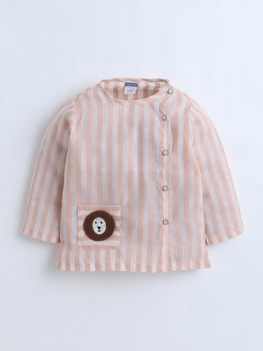 Polka Tots Full-Sleeves Pink Beige Striped with Lion Pocket Jhabla and Pant Set - OFF WHITE