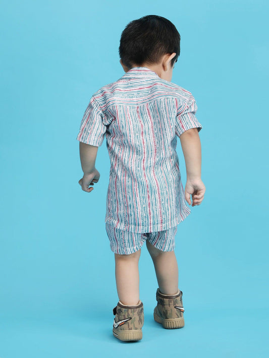 Polka Tots Cotton Half Sleeves Stripes print Co-ords - Blue