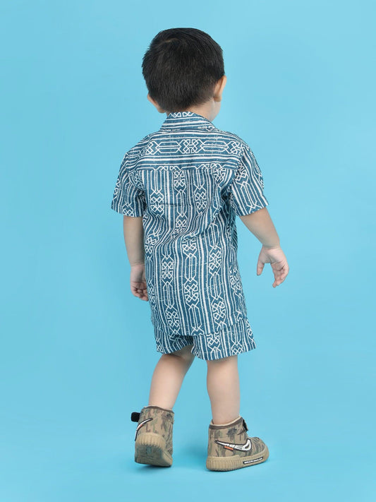 Polka Tots Cotton Half Sleeves Geometric print Co-ords - Sea blue